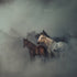 Eng dramatesch, pittoresch Duerstellung vun enger Herde vu wëll Päerd, déi duerch Stëbs an Niwwel briechen. D'Bewegung vibréiert an der Loft wéi déi donkel Silhouette sech an engem mächtege, poetesche Motiv versammelen. Déi verluer Päerd vun Hüseyin Taşkin bréngt eng rau, zäitlos Energie an e Gefill vu Fräiheet an d'Haus. Perfekt fir Zëmmer mat Natur-inspiréiert Rou.
