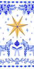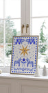 Eng atmosphäresch Folk-inspiréiert Wanterposter vum Aliya Putrus: E gëllene Stär am Zentrum ëmgi vu Schnéiflakken, Beeren an engem dekorative Bogen, mat engem klengen Dala Päerd als charmante Detail. Blo, wäiss a brong Schatten kreéieren eng skandinavesch Chrëschtatmosphär, waarm a nostalgesch. Perfekt fir den Aganksberäich, Wunnzëmmer oder Kannerzëmmer während der Feierdeeg.