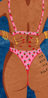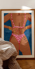 De My Ass My Rules Poster ass e fäertenlos an empowerend Konschtstéck dat Kierpervertrauen a Selbstbestëmmung feiert. D'Stéck weist eng gebrannt Figur an engem fett rosa Bikini mat engem Erdbeermuster deen unapologetesch natierlech Stretchmarken beliicht an den handgezeechente Text "My Ass My Rules" um Oberschenkel. Den déifbloen texturéierten Hannergrond bitt e staarke Kontrast, wärend Gold Bijouen an hell rout Neel en Touch vu Glamour addéieren. Perfekt fir zäitgenëssesch Interieur, empowering Raim a Konschtliebhaber déi kompromisslos Selbstausdrock ëmfaassen.