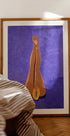 Papaya Legs Poster ass e fett a provokativt Konschtstéck dat Kierperpositivitéit mat symbolescher Sensualitéit kombinéiert. Et weist eng brong Hautfaarf, déi sech mat de Been ausgestreckt géint e liewege purpurroude texturéierten Hannergrond hält, eng halbéiert Papaya tëscht hiren Oberschenkel hält - eng Angschtlos Representatioun vu weiblech Energie a Selbstausdrock. Déi waarm Téin vun Haut an Uebst schafen e markant Kontrast zum coolen, déifen Hannergrond, mécht dëst eng faszinéierend Ausso fir modern, empowerend a kierperpositiv Interieuren.