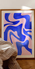 Šis drąsus abstraktus meno kūrinys pasižymi tekančiomis mėlynomis bangomis švelniai rausvame fone. Dinamiški vingiai sukuria ritmą ir judesį, o žaismingumą derina su šiuolaikišku minimalizmu. Išskirtinis kūrinys, kuris bet kuriai moderniai erdvei suteikia gaivaus energijos ir meniškumo.