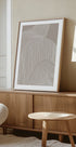 Minimalistinis abstraktus plakatas su ekologiškomis, tekančiomis baltomis linijomis švelniame smėlio spalvos fone. Puikūs, ritmiški raštai suteikia judesio ir tekstūros, o natūralią eleganciją derina su šiuolaikišku dizainu. Puikiai tinka moderniems interjerams, norintiems ramaus neutralių tonų sienų meno.