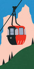 Drąsi ir žaisminga grafinė raudono funikulieriaus iliustracija, sklandanti per Alpes. Švariomis linijomis, plokščiomis spalvomis ir retro kelionių estetika kūrinys moderniu, menišku stiliumi pagauna nuotykių kalnuose džiaugsmą ir nesenstantį aukštų kalnų transporto žavesį.