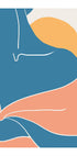 Minimalistinis abstraktus moters figūros kūrinys, sudarytas geometrinėmis mėlynos ir persiko spalvos formomis su auksine saule fone. Kompozicijoje pabrėžiami išlinkimai ir formos, o modernus paprastumas dera su amžiaus vidurio elegancija.