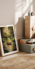 Nuotaikinga parodija, kurioje klasikinis aliejinės tapybos peizažo stilius derinamas su popkultūra. Scenoje rodomas animacinio filmo personažas, ramiai žvejojantis medinėje valtyje, apsuptoje vešlių medžių ir žėrinčios upės. Žaismingas gamtos ir siurrealistinio humoro derinys, puikiai tinkantis savotiško sienų meno gerbėjams.