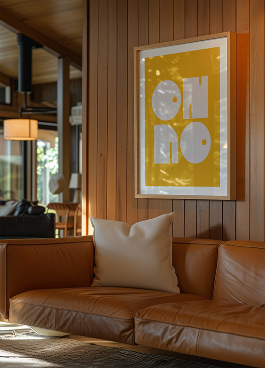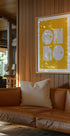 Išskirtinis minimalistinis tipografinis meno kūrinys, kuriame ryškiomis geometrinėmis formomis ir retro įkvėpto dizaino rašoma „o ne“. Su ryškiu geltonu fonu ir švelniomis apskritimo formomis plakate dera humoras, žaismingumas ir moderni grafinė estetika, todėl tai yra įspūdingas šiuolaikinio sienų meno kūrinys.