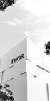Elegantiška nespalvota „Dior“ parduotuvės Majamyje nuotrauka, kurioje matomos modernios architektūros linijos, vainikuotos žvaigždute. Šiuolaikinėje aplinkoje užfiksuojantis prabangaus Dior buvimo eleganciją, šis raštas tampa stilingu interjeru, įkvėptu mados, architektūros ir nesenstančio dizaino.