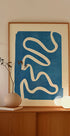 Geometrinis abstraktus minimalus mėlynas plakatas