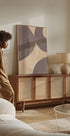 Šiame moderniame abstrakčiame plakate yra lygios, išlenktos, žemiškų violetinės ir smėlio spalvos atspalvių formos. Organinės formos ir švelni akvarelės tekstūra sukuria harmoningą tėkmę – idealiai tinka minimalistinėms erdvėms suteikti gylio ir elegancijos. Šis meno kūrinys, pakabintas vienas arba kaip galerijos sienos dalis, suteikia ramybės ir rafinuotumo bet kokiam namų dekorui.