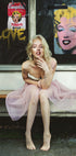 Šiuolaikinė klasikinio popmeno interpretacija, maišanti ikoniškus motyvus su šiuolaikiniu stiliumi. Moteris su rožiniu sijonu atspindi senovinį žavesį Warholo Marilyn ir Campbell sriubos skardinių grafičių fone, sukurdama dinamišką vizualinį susiliejimą.
