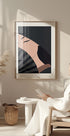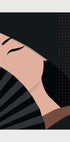 Įspūdingas geišos, iš dalies paslėptos už tradicinės vėduoklės, portretas, jos akys šiek tiek užmerktos po tamsia kepure. Švarios linijos ir prislopinti tonai suteikia paslapties ir elegancijos pojūtį – puikiai tinka japoniškam, kultūriniam ar moderniam interjerui.