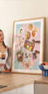 Gyva iliustracija, kurioje užfiksuotas priešpiečių su draugais prie spalvingo stalo džiaugsmas. Nuo rameno ir taco iki kruasanų ir šviežių vaisių – šis meno kūrinys švenčia pasaulinę virtuvę ir bendruomenę, pabrėžiant maistą kaip maistą ir bendrą meilės bei draugystės patirtį.