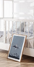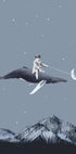 Siurrealistinis ir vaizduotės kupinas meno kūrinys, kuriame vaizduojamas berniukas, jojantis banginiu žvaigždėtu nakties dangumi, lazda valdant pusmėnulį. Virš snieguotų kalnų ši svajinga kompozicija užfiksuoja vaikystės stebuklą, vaizduotę ir beribę fantaziją – puikiai tiks vaikų kambariams ir žaismingam interjerui.