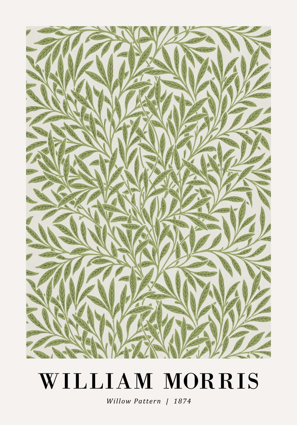 Nesenstantis botaninis plakatas su legendiniu *gluosnio raštu*, kurį 1874 m. sukūrė Williamas Morrisas. Subtilūs žali lapai sukuria žavų, gamtos įkvėptą raštą, puikiai atspindintį *menų ir amatų judėjimo* stilių. Idealiai tinka tiems, kurie mėgsta vintažinį dizainą, klasikinį meistriškumą ir natūralius raštus.