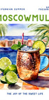 Šajā dzīvīgajā plakātā redzams atsvaidzinošs Maskavas mūlis, kas tiek pasniegts vara krūzē, kopā ar svaigiem laimiem un baseinu fonā. Ar spēcīgām krāsām un vasarīgu noskaņu tas atspoguļo citrusaugļu prieku, svaigumu un relaksāciju — ideāls mākslas darbs virtuvēm, bāriem vai vasaras iedvesmotām attēlu sienām.