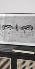 Spēcīga melnbalta dzīvnieku fotogrāfija, kurā redzamas divas gazeles, kuras savā starpā saduras duelī, un to ragi saduras spēkā un izaicinājumā. Šis attēls, kas uzņemts plašajā Serengeti savannā, atspoguļo neapstrādātu enerģiju, izdzīvošanu un mūžīgo tuksneša garu.