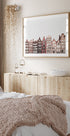 Amsterdam Plakat af Kathrin Pienaar fanger byens stemning med en række ikoniske kanalhuse i harmoniske farver, smalle facader og karakteristiske gavle. Den klare blå himmel og rene komposition skaber ro og balance, der bringer nordisk enkelhed og urban charme ind i stuen, gangen eller kontoret. Perfekt til rejseminder.
