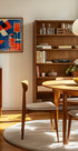 Drosmīgs un krāsains ikoniskā Aperol Spritz kokteiļa grafiskais plakāts ar ģeometriskām formām koši oranžā, zilā, melnā un baltā krāsā. Ar savu modernisma dizainu un rotaļīgo enerģiju mākslas darbs atspoguļo itāļu aperitīvu kultūras būtību, kas ir lieliski piemērots virtuvēm, bāriem un sociālajām telpām.