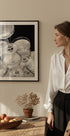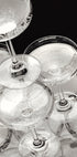 Izsmalcināta melnbalta šampanieša torņa fotogrāfija ar smalkiem atspīdumiem un burbuļiem vintage kupejas glāzē. Šī mūžīgā klusā daba atspoguļo ballītes eleganci un ir skaists papildinājums modernām virtuvēm, ēdamistabām un stilīgam interjeram.
