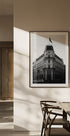 Majestātiska melnbalta fotogrāfija ar vēsturisku ēku Kopenhāgenā, kuru vainago zvanu tornis un elegants karogs. Atspoguļojot mūžīgo Eiropas šarmu, detalizētā fasāde un grandiozā simetrija padara šo apdruku par izsmalcinātu sienas mākslas darbu interjerā, kuru iedvesmojusi arhitektūra, kultūra un klasiskā pilsētas dzīve.