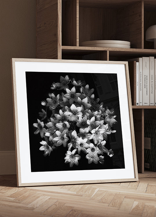 Early Sensation, autors Iveta Depaepe ir poētisks, melnbalts ziedoša klematiķa portrets. Uz dziļa, samtaini tumša fona parādās mirdzošas ziedlapiņas ar skulpturāliem izliekumiem un smalkām vēnām, kas atklāj ziedu kluso dramatismu. Izsmalcināta botāniskā klusā daba ar mierīgu, kontrastu un mūžīgu eleganci. Izveidots Brigē, Beļģijā.