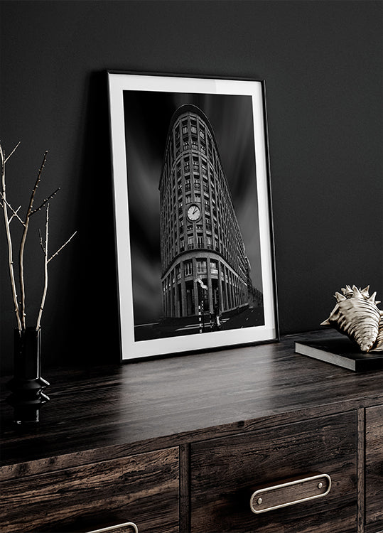 Hotel Amadi af Henk Langerak fanger Amsterdams moderne puls i et sofistikeret sort-hvidt motiv. Skarpe linjer, rytmiske vinduesrækker og en markant urtavle trækker øjet ind, mens gadens geometri giver ro og dybde. En grafisk stærk plakat, der løfter både stue og kontor. Perfekt til elskere af minimalistisk arkitektur og urban poesi.