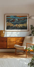 Elpu aizraujošs skats no gaisa uz Kalifornijas tuksneša ainavu, kurā redzamas dabas mākslinieciskās straumes un deltas virs smilšu kāpām. Sarežģītie vēnām līdzīgi raksti zilā un zelta krāsā rada abstraktu šedevru, kur zeme un ūdens saplūst harmonijā. Pārsteidzošs foto sienas mākslas darbs mūsdienīgam interjeram.