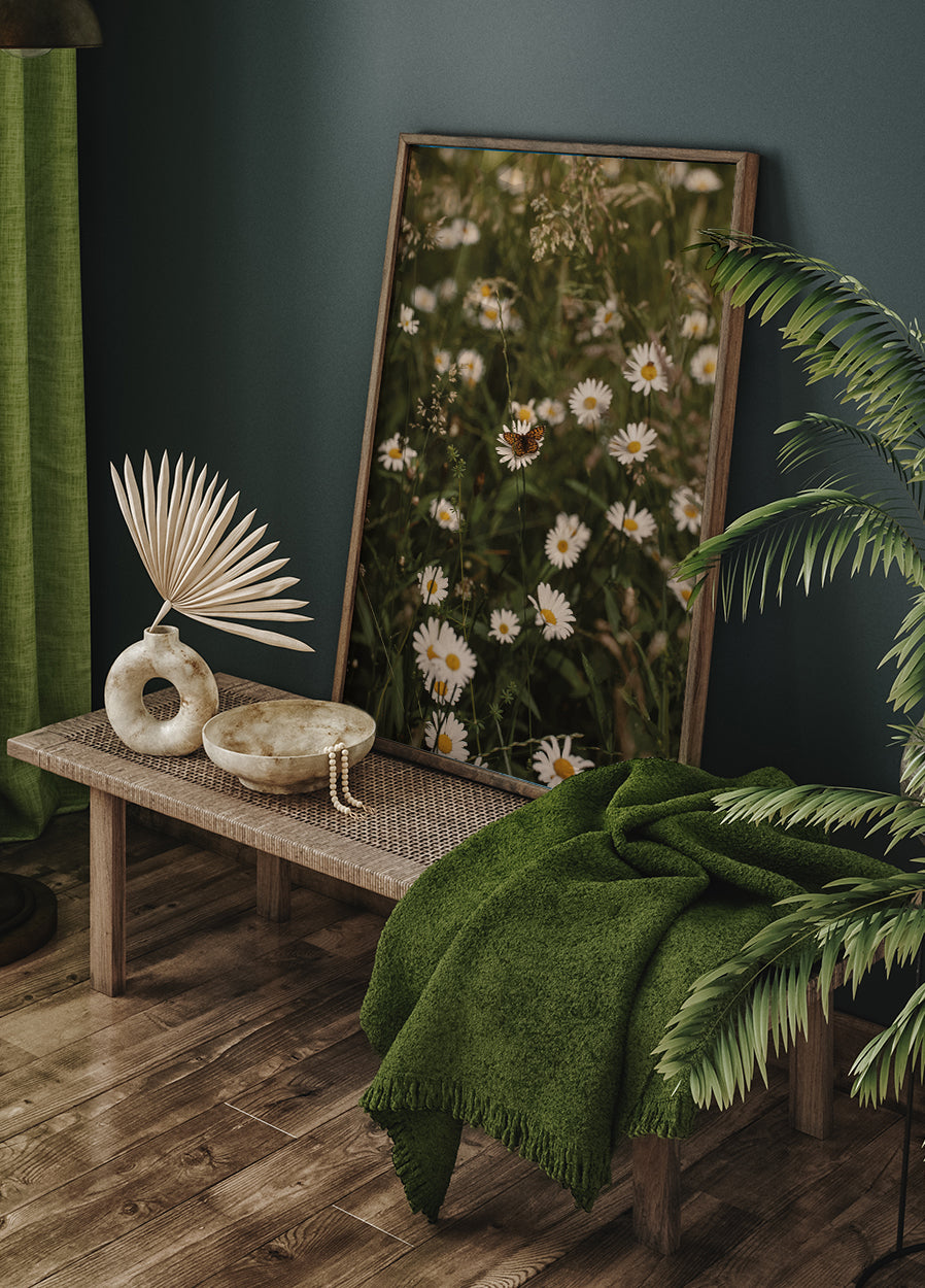 Smalks un moderns plakāts ar kumelīšu ziedu un tauriņa motīvu. Lieliski piemērots, lai jebkurā telpā, gan mājās, gan birojā, radītu mierīgu un dabisku atmosfēru.