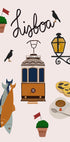 Tag på en visuel rejse til Lissabon: en gylden gul sporvogn snor sig mellem pastelfacader, blå azulejos og stejle bakker, mens kabeltråde og gadelamper skitserer himlen. Varme toner, havbrise og liv fra caféer og sardineribarer forenes i et tidløst, grafisk motiv, der fanger byens sjæl. Sollys og udsigt mod Tejo fuldender rejsedrømmen.