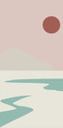 En rolig, minimalistisk daggrysscene af Little Dean: bløde, pastellyserøde nuancer breder sig over en stille sø, hvor fjerne bakker og sneklædte silhuetter tegner en ren horisont. En grafisk, nutidig landskabskomposition, der indfanger kulde, klarhed og betagende ro i ét enkelt, poetisk øjeblik. Perfekt til moderne indretning.