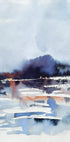 Helena Ryhles Misty Lake Reflections indfanger en tågeklædt sø, hvor himlen spejler sig i stille vand. Subtile blå og gyldne nuancer glider sammen i et minimalistisk akvarellunivers, der emmer af ro, efterår og nordisk natur. Et moderne, stemningsfuldt blikfang til hjemmet. Inspireret af Islands landskaber skaber værket en følelse af tidløs ro.
