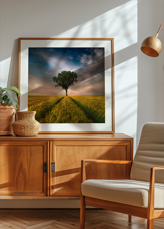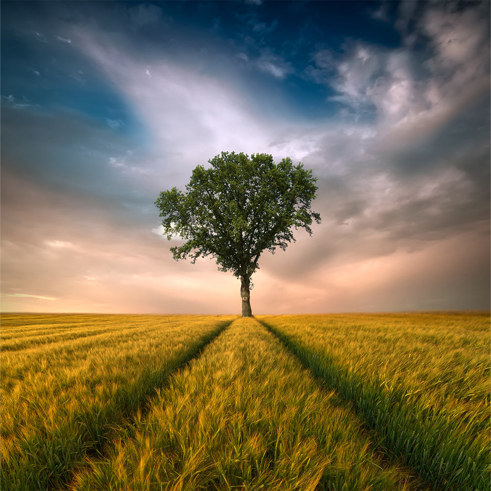 Fotogrāfs Pjotrs Krols (Bax) iemūžina vientuļu koku slīdošā, zeltainā kviešu lauka vidū. Mīkstas rievas griežas cauri ainavai un ved aci pretī horizontam, kur silta vasaras gaisma satiekas ar plašām atklātām debesīm. Kluss, poētisks mirklis no Polijas laukiem, piepildīts ar mieru, dziļumu un perspektīvu. Un ceru.