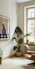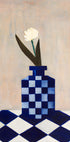 Mūsdienīga klusā daba ar raksturīgu zili rūtainu vāzi un vienu, smalku ziedu. Ar ģeometrisku rakstu un minimālisma kombināciju šis gabals ienes modernā interjerā eleganci un māksliniecisku šarmu.