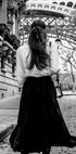 Graciozā melnbaltā fotogrāfija, kurā redzama sieviete, kas staigā zem Eifeļa torņa, uzvilkusi plīvojošus svārkus un matus, kas sasieti ar banti, rada Parīzes šarmu un mūžīgu eleganci. Tverot Parīzes ielu un modes romantiku, šī apdruka ir burvīgs priekšstats par interjeru, ko iedvesmojuši ceļojumi, stils un izsmalcinātība.