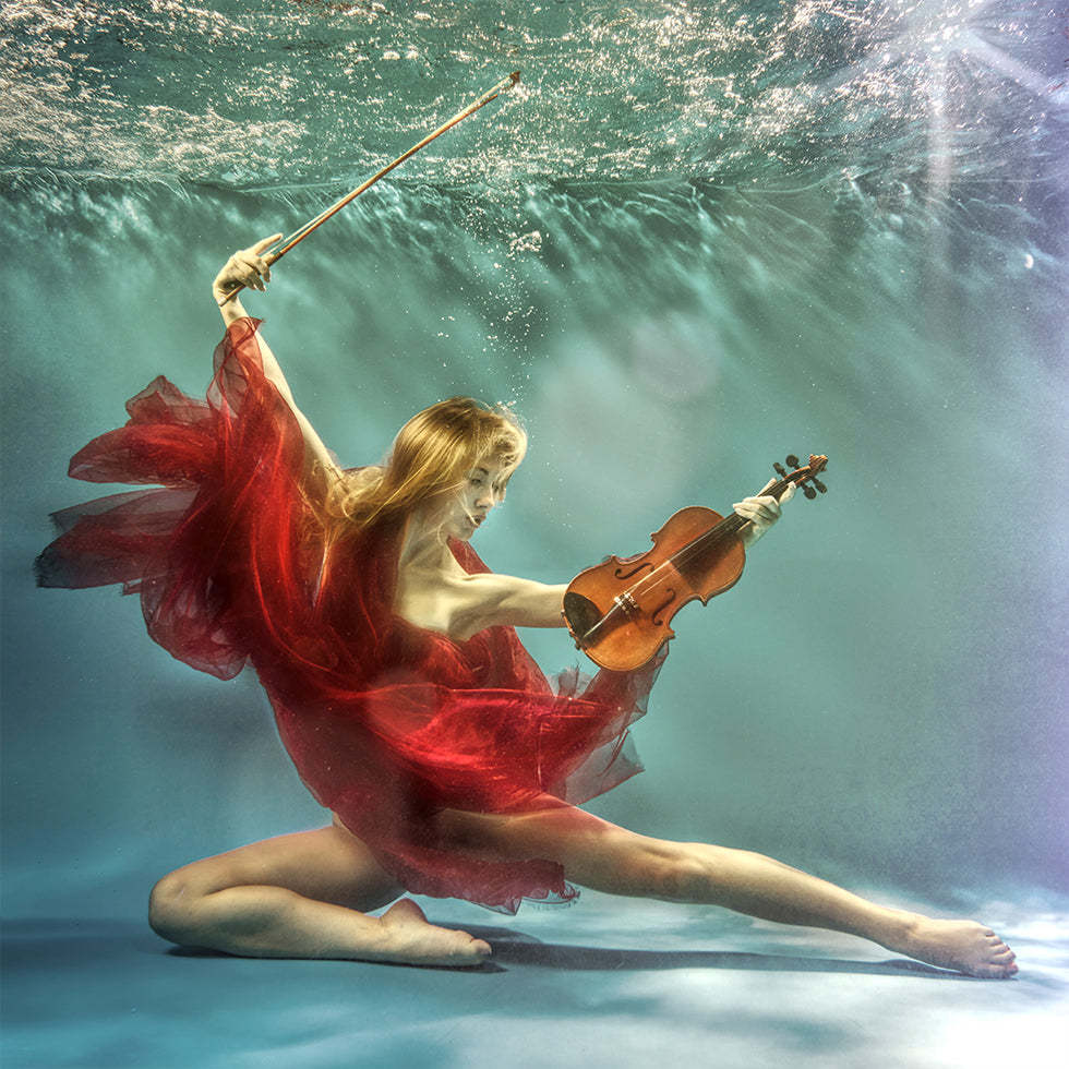 Sapņains zemūdens portrets, kurā pāris peld baseinā un spēlē vijoli starp mirdzošiem burbuļiem un šūpojošiem ziediem. Romantika un mūzika saplūst klusā prelūdijā, kas izstaro dzeju, kaislību un bezsvara eleganci. Uniquecapture fotogrāfija radīta emociju raisīšanai. Lieliski piemērots kā centrālais acu uztvērējs mājās.