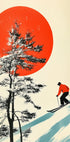 Elegantais Andreasa Magnusona retro plakāts: Slēpotājs griež sliežu ceļu lejā pa sniegotu kalna nogāzi, ko papildina tumši koki, kamēr debesīs lec liela sarkana saule. Tīrā kompozīcija un vintage krāsas apvieno japāņu minimālismu ar klasisko slēpošanas garu – ideāli piemērots ziemeļnieciskam mieram un piedzīvojumu sajūtai. Tagad.