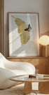 Izsmalcināts minimālisma mākslas darbs ar zelta palmu lapu un smalki detalizētu monarha tauriņu. Tīrā kompozīcija apvieno tropu eleganci ar dabisku simboliku, padarot to par mūžīgu botānisku motīvu, kas ir lieliski piemērots modernam vai lauku stila interjeram.