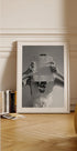 Pārsteidzoša melnbalta modes fotogrāfija, kurā redzama sieviete, kas tur sev priekšā žurnālu Vogue Italia, valkā pārāk lielu kaklarotu un teksturētu apģērbu. Mākslas darbs atspoguļo modes pasaules noslēpumu un valdzinājumu, anonimitātes un drosmīga stila sajaukumu. Lieliski piemērots mūsdienīgam interjeram un modes iedvesmotām galeriju sienām.
