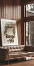 Slīdiet zelta laikmeta slēpošanas atvaļinājumā, izmantojot šo vintage stila ceļojumu pastkarti. Sniega virsotnes paceļas pāri tumšajām priedēm, pāri trasei kuģo sarkans trošu vagoniņš, un drosmīga retro tipogrāfija aicina uz Eiropas ikoniskajiem kūrortiem — padomājiet par Šamonī šarmu un kalnu piedzīvojumiem —, kas iemūžināti siltos zaļumos, brūnos toņos un kraukšķīgos ziemas baltumos. Nostalģisks mājiens slēpošanas cienītājiem.