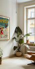 Nostalģiska après-ski pinup aina: smaidīgs pāris vintage stilā grauzdējot viskiju, ko ieskauj sniegoti kalni un retro kotedžas atmosfēra. Siltās dzintara krāsas satiekas ar kristāldzidru ziemas gaisu, un tādas detaļas kā slēpju nūjas, cimdi un adījumi nosaka toni. Ideāli piemērots bāra sienai, kabīnei vai ziemas sapņiem visu gadu.