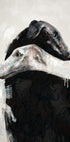 Izteiksmīga digitāla glezna ar diviem kurtiem mīlošā apskāvienā, kuru ķermeņi pārklājas maigā pozā. Mākslas darbā ir apvienoti reālistiski suņu portreti ar abstraktiem otas triepieniem un ziedu detaļām, radot harmonisku līdzsvaru starp emocijām un mākslu. Aizkustinošs gabals, kas simbolizē mīlestību, pieķeršanos un draudzību.