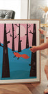 Nikolaja Ziemas lapsa attēlo sarkano lapsu klusā ziemas mežā, ko apgaismo mēness gaisma. Ģeometriskas formas un smalkas līnijas satiekas minimālistiskā, rotaļīgā kompozīcijā ar maigiem pasteļtoņiem rozā un zilā krāsā. Sniega klāti koki un skaidras nakts debesis piešķir subjektam sapņainu, poētisku mieru. Lieliski piemērots bērnu istabām un mūsdienīgam interjeram.