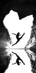 Această lucrare de artă uimitoare în alb-negru arată o balerină sărind cu grație într-o peșteră în formă de inimă, cu reflexia ei reflectată în apă nemișcată. Silueta dramatică unește dansul, natura și romantismul și creează o expresie vizuală puternică a pasiunii, eleganței și frumuseții artistice atemporale.