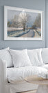 Acest peisaj liniștit de iarnă surprinde o dimineață geroasă de-a lungul unui drum de țară liniștit, cu un copac acoperit de zăpadă care strălucește în lumină pastelată. Tonurile atenuate și atmosfera calmă evocă liniștea, prospețimea și frumusețea liniștită a dimineții, creând o lucrare de artă liniștitoare pentru pereții sezonieri și inspirați de natură.