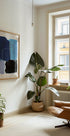 Un afiș abstract impresionant cu pensule expresive în albastru marin intens, mov moale, albastru deschis și negru. Texturile picturale și câmpurile de culoare suprapuse creează o compoziție modernă care echilibrează puterea și subtilitatea - perfectă pentru interioare contemporane, spații minimaliste sau pereți de galerie.
