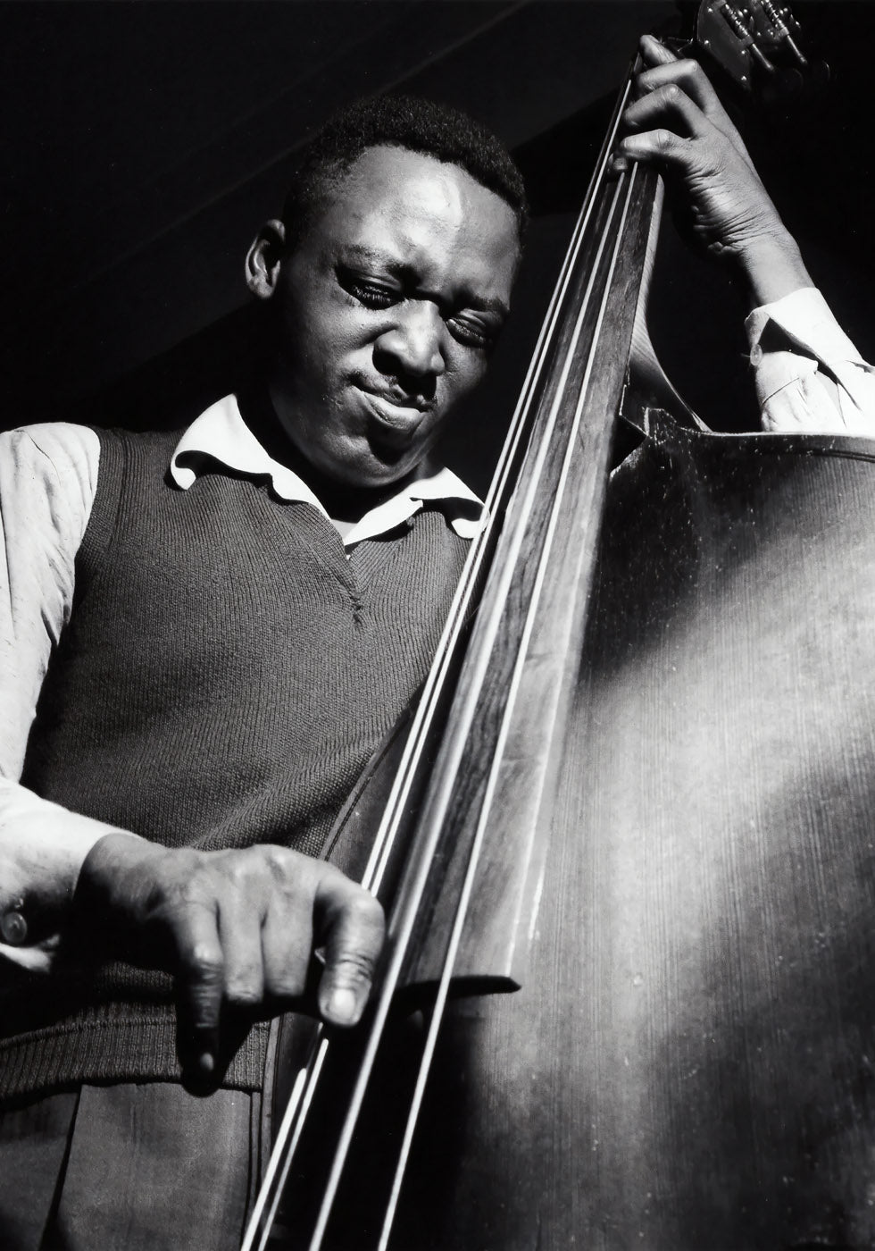 O fotografie puternică alb-negru care surprinde pasiunea și intensitatea unui muzician de jazz care cântă la contrabas. Iluminarea dramatică și compoziția expresivă subliniază legătura profundă dintre artist și instrumentul său. Un tribut atemporal adus jazz-ului, muzicii și expresiei artistice — perfect pentru iubitorii de muzică și pasionații de fotografie de epocă.