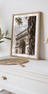 O imprimare fotografică rafinată a Arcului de Triumf din Paris, încadrată de ramuri de copaci și lumină blândă a zilei. Captând sculpturile complicate ale monumentului și arhitectura neoclasică, opera de artă evidențiază unul dintre cele mai emblematice repere ale Franței, combinând istoria, cultura și eleganța atemporală.
