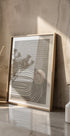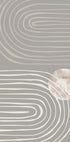 Un afiș abstract minimalist cu modele de linii arcuite curgătoare în bej moale pe un fundal gri atenuat, evidențiat de un cerc texturat. Geometria organică oferă o expresie calmă și echilibrată, ideală pentru interioarele japoneze, nordice sau minimaliste moderne.