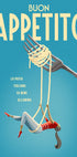 Un afiș colorat și jucăuș de inspirație italiană, care prezintă o ilustrație a unei femei legănându-se pe fire de paste înfășurate în jurul unei furculițe. Cu textul izbitor Poftă bună celebrează bucuria mâncărurilor italiene și confortul său plin de suflet, un amestec de umor și stil într-o operă de artă atrăgătoare.