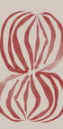 Crimson Echoforms af THE MIUUS STUDIO forener bløde beige toner med dybe røde former i et balanceret, grafisk stilleben. Halvcirkler, striber og rektangler danner rytmiske ekkoer omkring en stiliseret vase og skål, som skaber rolig bevægelse, retro-charme og tidløs, moderne minimalisme i en harmonisk komposition med akvareltekstur.